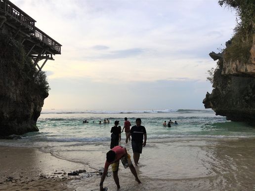 Wir besuchen einige Strände wie z.B. Bingin Beach, Nyang Nyang, Thomas Beach, Padang Padang Beach und Dreamland Beach. An vielen Stränden kann man überhaupt nicht richtig baden, da das Wasser erst viel zu weit draussen tief genug ist. Man steht bis zu den Knien im Wasser und muss sich auf Steine und Algen legen, um eine Abkühlung zu bekommen. An anderen Stränden sind die Wellen einfach so gewaltig, dass dort sogar Schilder mit "Baden verboten" aufgebaut sind.